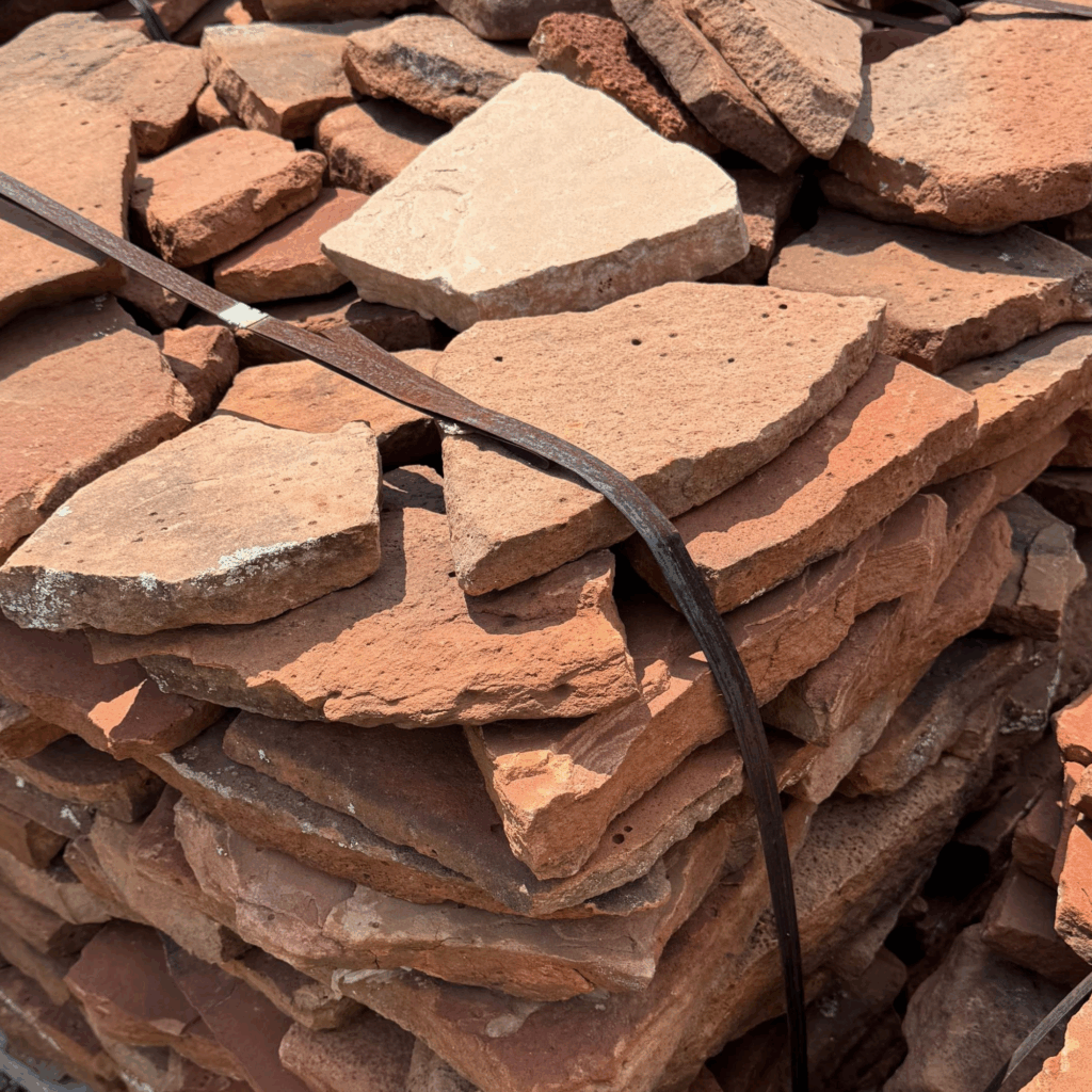 Flagstone is a natural stone that is typically sold in an irregular, inconsistent flat shape and no two stones seem to be alike. However, flagstone can also be cut into tile stones. It’s thickness usually ranges from 1 to 2 inches. It is durable and can be used both indoors and outdoors. Typically used for walkways and patios. It’s greatest advantage being able to create an enhanced