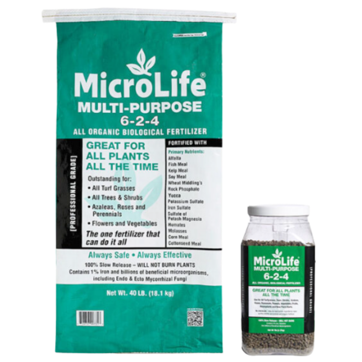 Multi-purpose for all Turfgrasses, Ornamentals, Perennials, Flowers and Vegetables. Sizes: 40lb Bag, 7lb Jar. The very first MicroLife, multi-purpose, fantastic performer and proven for all Turfgrasses, Ornamentals, Perennials, Trees, Flowers and Vegetables. 100 % slow release and will not burn. You can depend on this product to serve you well for increasing all plant performance.