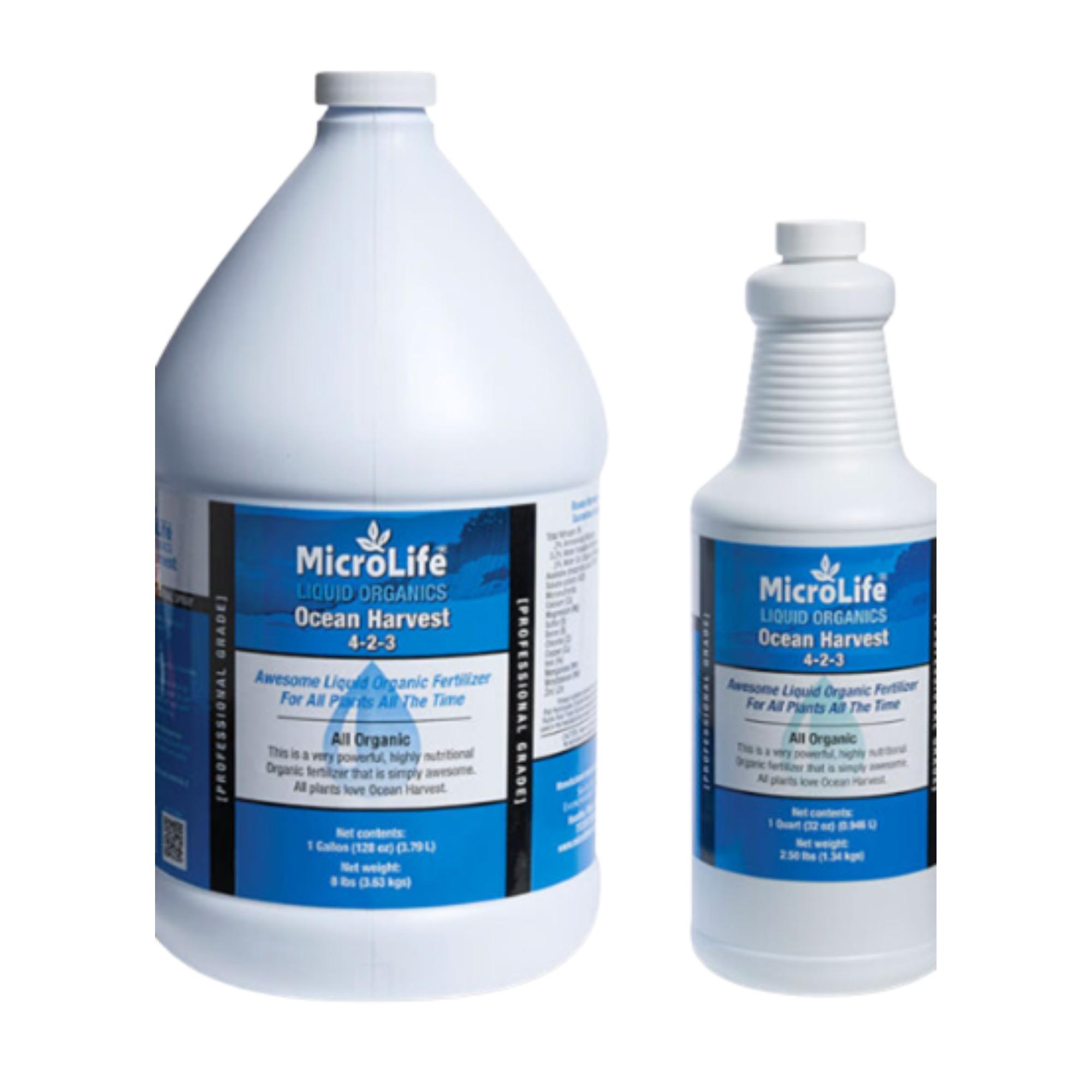 Full Strength Multi-Purpose Organic Fertilizer. Sizes: 1gl, 1qt. Ocean Harvest 4-2-3 is fast acting as it is readily absorbed through the leaves and roots. Plants become stronger with more beautiful color and more resistant to problems of stress, pest insects and disease.